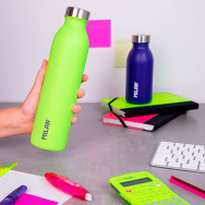 Bouteille isotherme avec double paroi en acier inoxydable. Série Acid, couleur Jaune. Capacité : 0,59 l. Isolation sous vide qui empêche la condensation et permet à la partie extérieure de rester à température ambiante. Maintient la température du liquide contenu (jusqu’à 12 h boissons chaudes, et 24 h boissons froides). Bouchon à vis hermétique, avec...