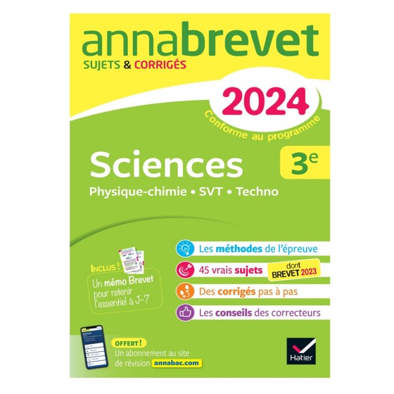 Pour réussir les 5 épreuves du brevet. Des sujets corrigés pour chaque épreuve écrite : Français, Maths, Hist.-géo EMC, Sciences. L'essentiel du programme de 3e en 30 fiches mémo. Pour l'épreuve orale, les méthodes clés et des exemples de présentation.