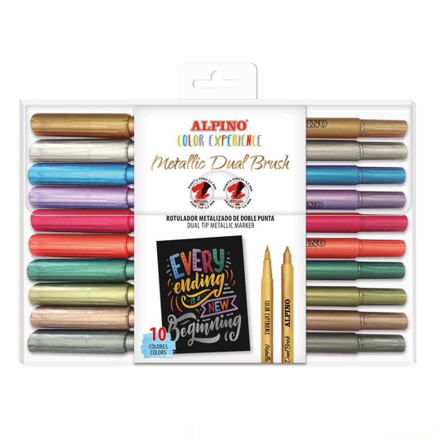 Marqueurs à double pointe Alpine Metallic Lettering, paquet de 10, couleurs assorties .
