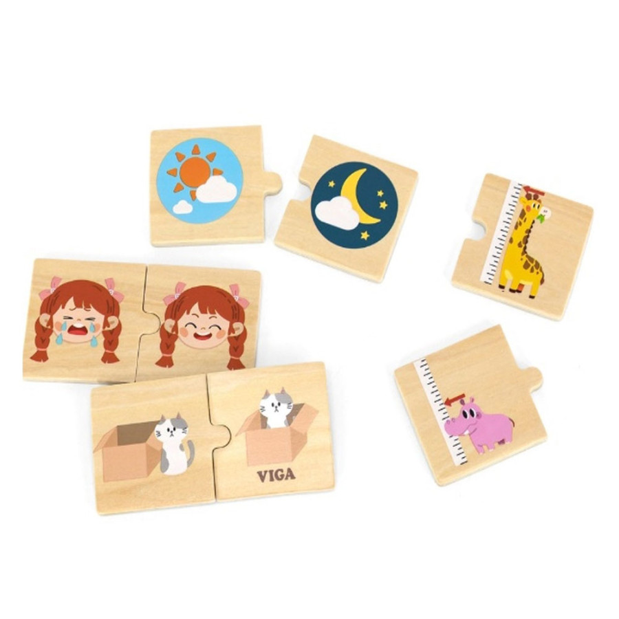 Ce puzzle des contraires est une façon ludique d'enrichir le vocabulaire des enfants en leur permettant d'associer les contraires et de découvrir leurs différences. Il favorise également le développement du vocabulaire, la concentration et la motricité fine des jeunes enfants, tout en stimulant leur raisonnement logique par la création d'associations et de liens. Livré avec une boîte magnétique pour un rangement facile.
