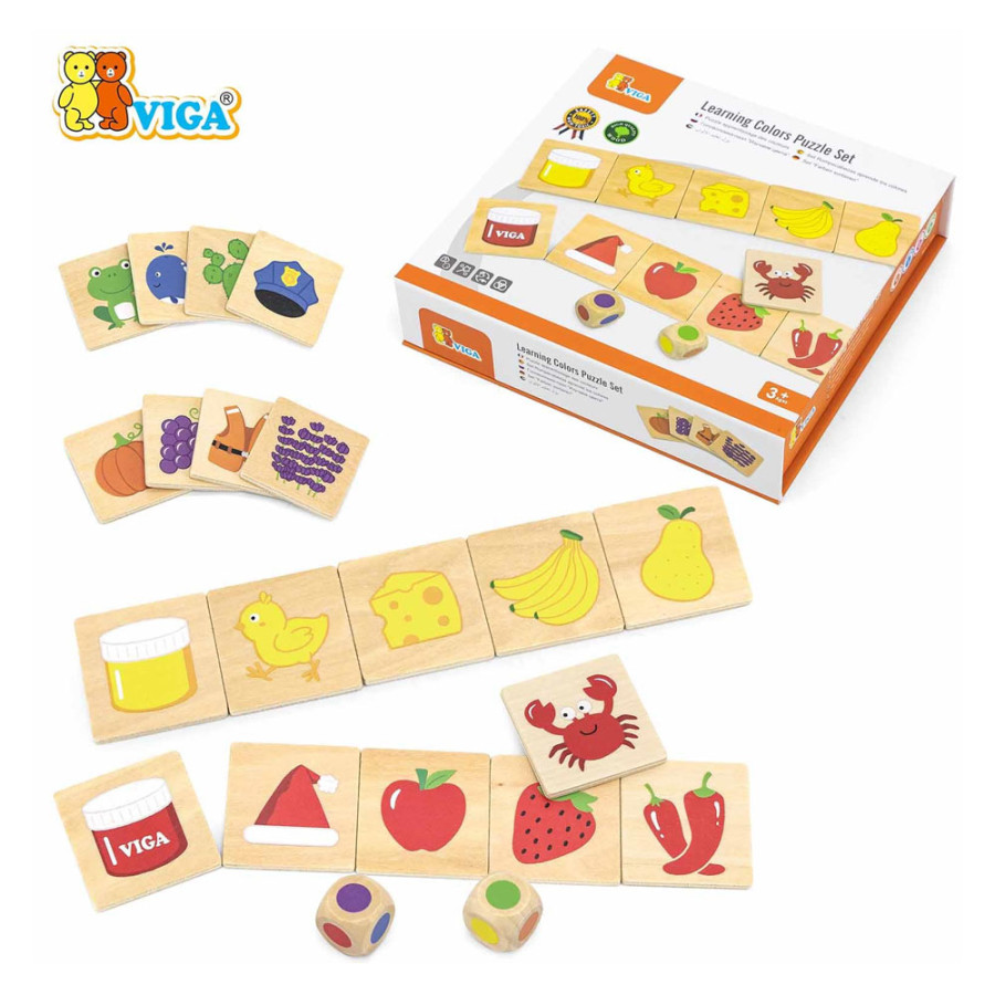 36 tuiles en bois avec des objets colorés à trier, classer, etc. Les enfants peuvent tout d'abord jouer seuls et trier les plaquettes par couleur. En commençant les lignes par un pot de couleur on peut créer un magnifique tableau. Pour un jeu collectif on place les tuiles sur la table, faces illustrées visibles. Chaque enfant à son tour jette un ou deux dés et il s'agit alors de choisir une plaquette (ou deux) de la couleur indiquée. Si on joue de la même manière avec les tuiles faces cachées, on obtient un jeu de mémoire! Un jeu modulable pour de multiples activités autour de l'apprentissage des couleurs!