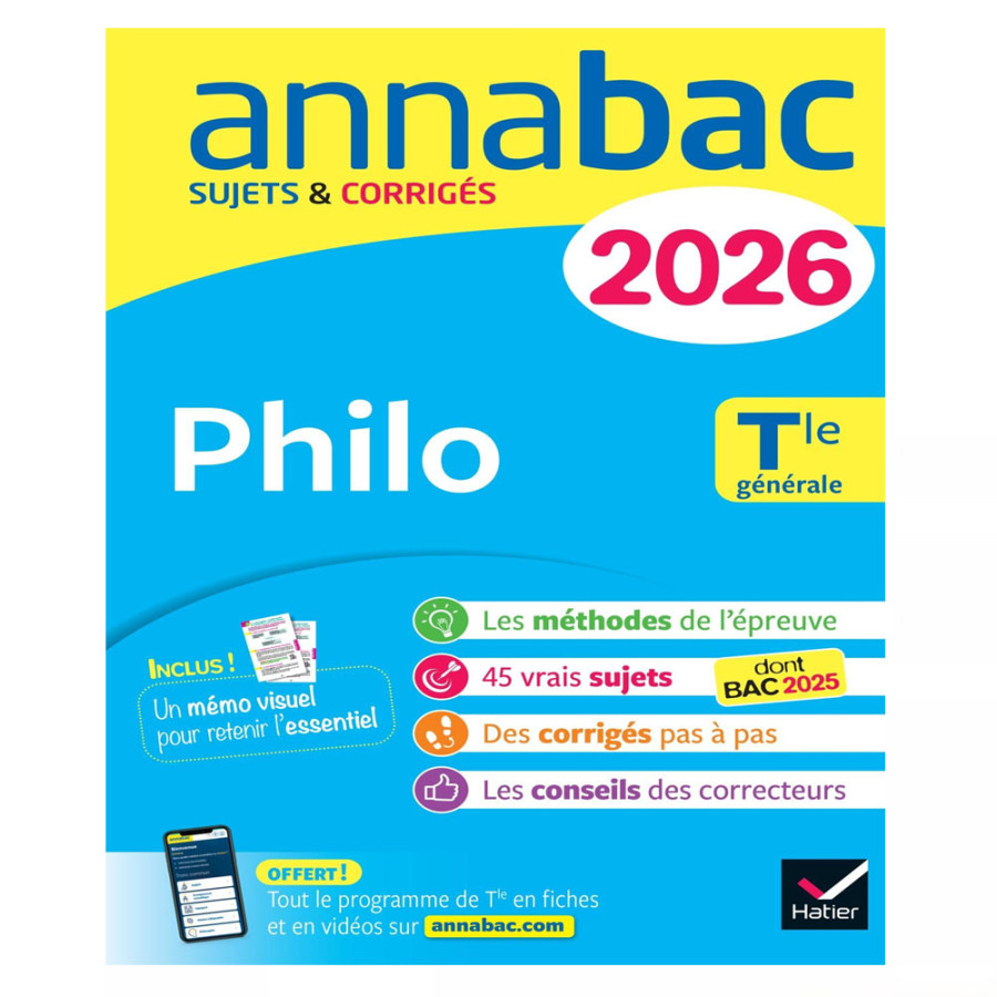 Pour réussir l'épreuve de Philo du bac 2026 ! - des sujets corrigés - des conseils de méthode - des fiches mémo couvrant toutes les notions - des vidéos Le succès assuré en 3 temps ! 1. Comprendre l'épreuve, s'approprier les méthodes Des conseils de méthode et sujets traités pas à pas pour comprendre comment faire une dissertation et une explication de texte en Philo. 2. S'entraîner sur chaque notion du programme Des fiches mémo pour réviser l'essentiel et 34 sujets guidés : une dissertation et une explication de texte sur chacune des 17 notions du programme de Philo.