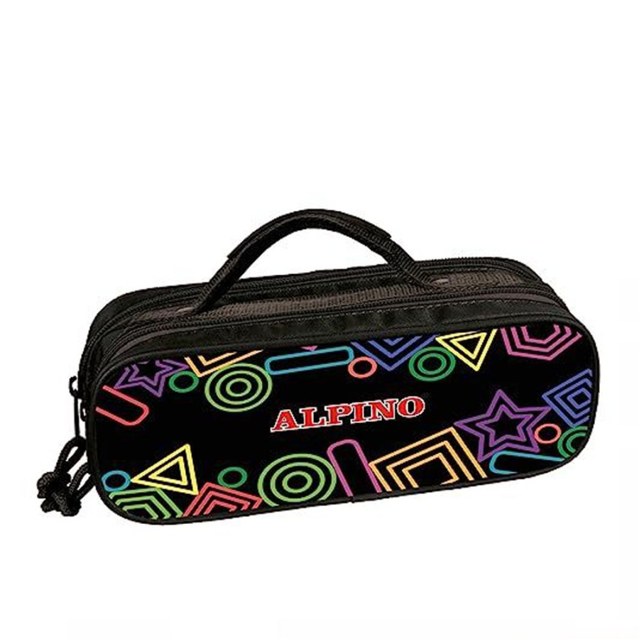 La trousse Alpino noire possède une double fermeture éclair et un renfort intérieur. Idéale pour les crayons et les feutres. Elle contient 3 compartiments. Trousse déjà remplie.